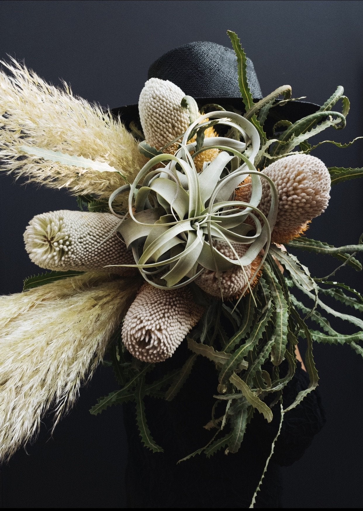 Regular price $149.00Banksia is a unique Australian transplant, literally & figuratively, that has notes of your favorite 70’s sweater life. It’s the perfect protea adjacent pick me up. Filled with live pampas & an ever changing airplant, this bouquet will preserve over time & last for-ev-er.